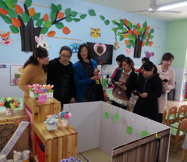 在刘霞园长的解说引导下,老师们参观了园容园貌,并深入班级看环境。美观、整洁、现代化的园舍环境,富有特色的墙面环境布置,极具创意的区域设置、废物利用的自制教玩具、彰显特色的专用教室等,令老师们对翠竹幼儿园的校园文化建设发出由衷的赞美,给老师们留下了深刻的印象。