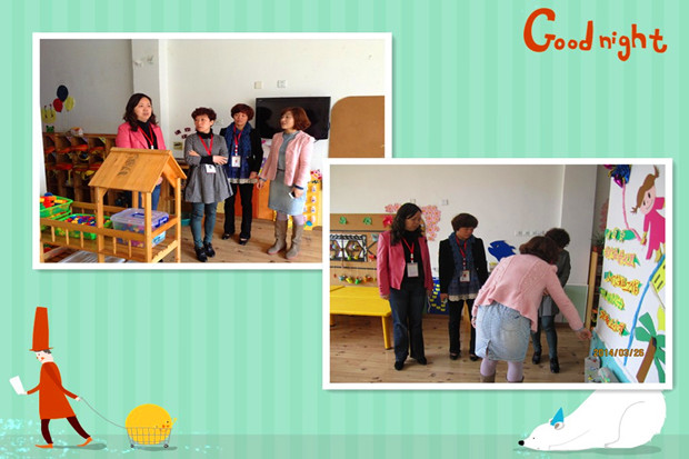 天宁区文教局责任督导组的施亚芳园长、顾魏华园长和谢琦芳园长来我园进行随访督查。在李园长的介绍和引导下,三位园长对我园的教育活动环境、教学活动设施、专用室的创建情况、教师队伍的建设逐一进行了解,三位园长给予了充分的肯定;李园长就下学期创建省优质园工作进行了汇报,三位园长也给予了充分的指导;同时,在班级一日常规的督查中,三位园长也提出些合理化建议。
