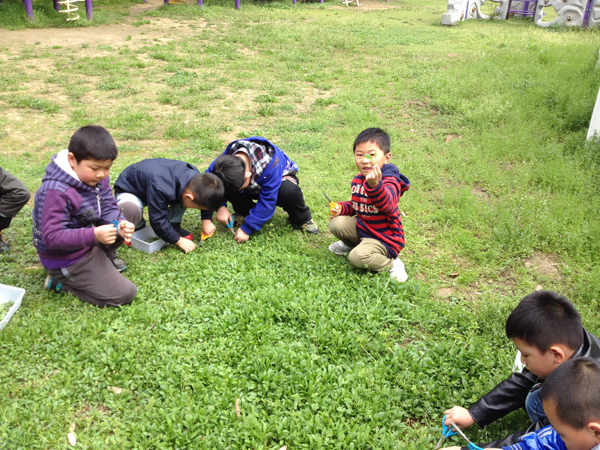 瞧,小朋友们拿着小剪刀和筐子,迎着温馨的春风走出教室,来到了我们北环幼儿园的户外草地上,去观察春天,寻找野菜。不一会儿,有的小朋友们就高兴地叫起来:“我找到马兰啦!”有的兴奋地喊:“我挖到荠菜啦!”他们还互相招呼着:“快到这儿来挖吧,这里的马兰可多啦!”小朋友们一边挖一边还不停地热烈讨论着哪个是野菜,哪个是小草?哪个是大大的、嫩嫩的?哪个是小小的、太老的?他们挖得可开心、快乐啦!