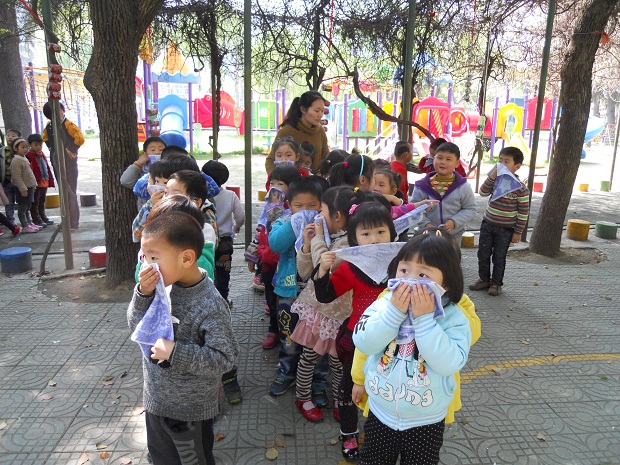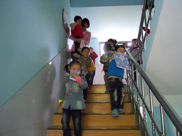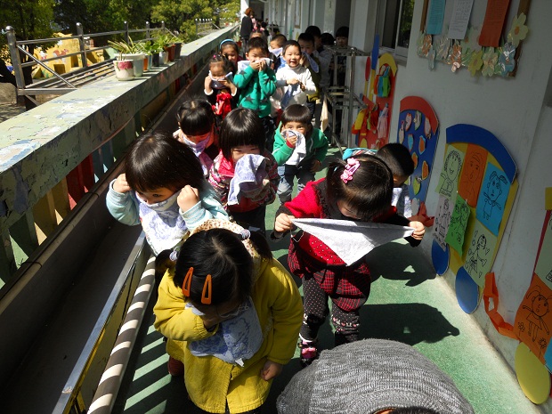 日前,我园开展了一次“消防演习”活动,警报拉响,只听保育员阿姨急促的声音“着火啦、着火啦”全体老师组成的紧急事件抢救小组人员在第一时间各就各位,带领孩子用湿毛巾捂住口鼻,弯腰穿过浓烟,迅速、有序地逃离了现场。大家都欢呼起来、松了口气。随后,孩子们有序地围在一起,老师又为大家演示了灭火器的使用方法,把整个活动推向了高潮。