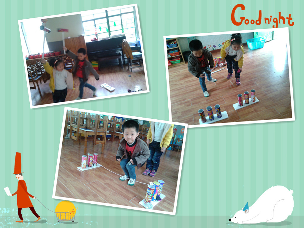 近期,丽华三幼的老师们纷纷开动脑筋,通过利用各种废旧材料制作出既富有童趣又能够锻炼身体的各种体育器械。一些在常人眼里一文不值的废物到了老师手里却变成了“宝贝”:有的老师利用旺仔牛奶铁罐与废旧泡沫垫制作了梅花桩,让孩子踩在梅花桩上练习平衡及跨跳能力;有的老师利用废旧纸箱制作了投掷迷宫,锻炼孩子们投掷协调能力及促进孩子们的空间推理能力,有的老师将薯片空桶制成击球、跳跃、保龄球等游戏材料,这些器械虽然使用生活中简便易得的材料制作,但深的孩子们的喜爱,让孩子们在玩的同时锻炼了身体。既富趣味又蕴涵着多元的教育价值,体现了幼儿园教师的创意与智慧。
