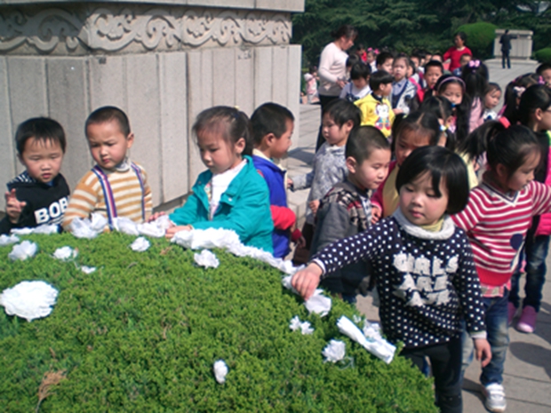 最后,老师及小朋友们深情的走在烈士碑前献上花环及小白花。孩子们稚嫩幼小的心灵或许朦朦胧胧、似懂非懂,但是在老师的引领下,他们对烈士的事迹从不知到了解、到敬重,从他们稚嫩和清澈的眼里可以看出孩子们对先烈的崇拜。通过老师向孩子讲解烈士事迹以及这次的扫墓活动,在孩子心中永远种下对先烈的尊重与感激之情,相信孩子们在不久的将来也像前辈们一样为国效力,尽自己最大的努力报答国家、报答我们为国捐躯的先烈们。
