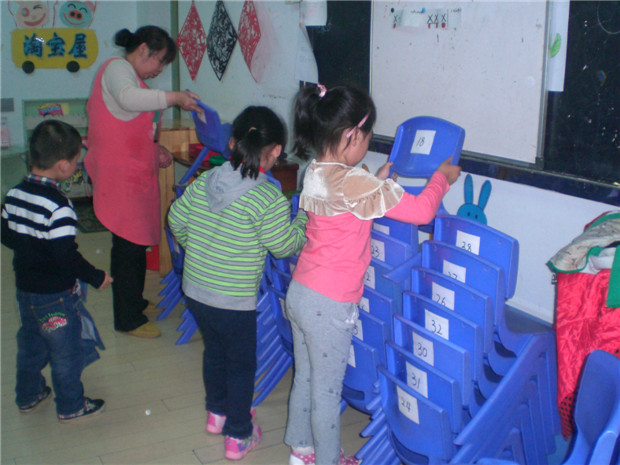 为了把先进的管理模式学到家,我园中二班率先做了大胆尝试,一走进中二班的教室,立刻被6S幼儿园管理后的剪刀、胶棒、板凳吸引住了,老师发挥自己的聪明才智,让这些学习用品更加整洁、易拿,不仅方便了老师,也方便了幼儿。