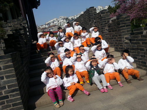 这天一大早,我园大班的小朋友们就坐上校车直奔西瀛里。首先映入孩子们眼帘的是一座高高的拱门,拱门上赫然写着三个大字“西瀛门”,这时老师们为小朋友们讲解起这座拱门的来历:这座拱门是“西瀛里城墙”的城门,足有5米 多高,门上的三个大字“西瀛门”是明朝的书法家唐驼写的,后来在战火中遗失,1987年改革开放后仿照遗迹重新修复了“西瀛门”......孩子们津津有味地听着老师的讲解,眼前仿佛一下子就展现出一副悠久又古老的常州城貌。