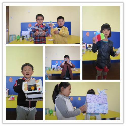 此次活动目标重在培养幼儿对科学的兴趣,引导他们在宽松的环境中大胆想象,利用生活废旧物品进行动手操作,而萌发环保及创新的意识。