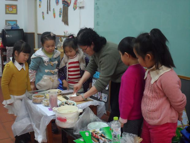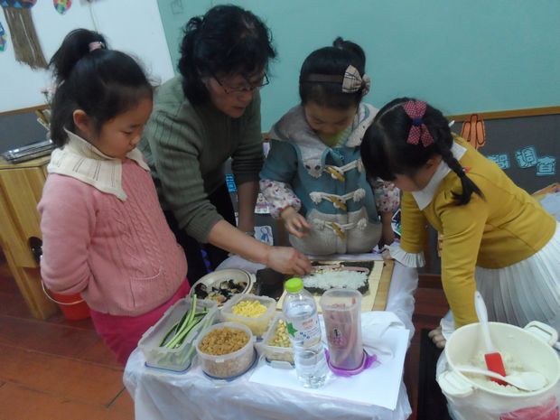 本次活动的主题是做寿司,为此奶奶外婆先精心准备了许多干净又有营养的材料,同时,还介绍了寿司的由来,接着展示了寿司的简单做法。孩子们都看得跃跃欲试。一双双小手在巧手外婆奶奶的带动下,都充分地动了起来。外婆奶奶耐心、细致的指导,让孩子们学得更加认真、饶有兴致。 此次活动丰富了孩子的一日生活,满足了他们的求知愿望和爱动的天性。孩子们动手动脑,还品尝了美味,学会了分享。而奶奶外婆们的热心参与,以及她们对幼儿园活动的支持,更让孩子们从多元的角度感受了活动的乐趣。
