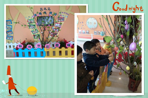 复活节是古老的基督教节日之一,它象征着重生和希望。对孩子们来说是一个奇趣的节日,可以画彩蛋、扮小兔找蛋、用美丽的百合花装扮环境的缤纷节日。看!三之三金梅幼儿园门厅“Happy Easter”海报和一颗颗由亲子共同制作完成的色彩缤纷、充满创意的彩蛋,无不传递着复活节的气息。