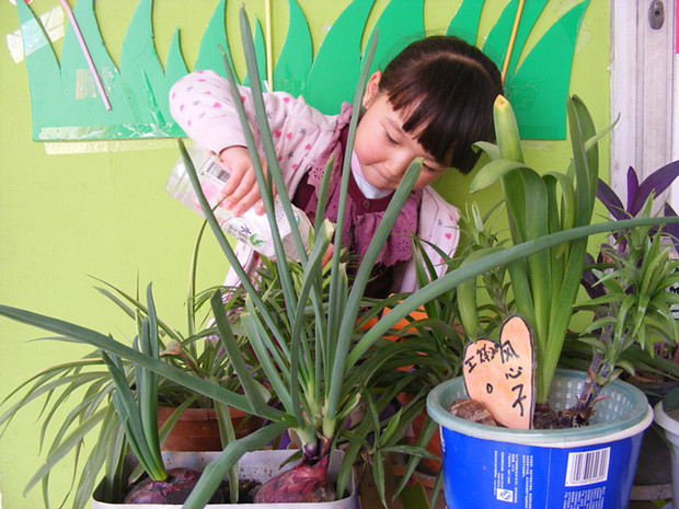 一、收集易于生长的植物。在家长的帮助下,幼儿收集到了大蒜、洋葱、芹菜、土豆、月季花、风信子等植物,并一起参与了种植。孩子跟家长共同种植过程中存在的教育性是显而易见的,家长会给幼儿一些浅显的相关知识,如,种植的植物叫什么名称,会长成什么样,要怎样维护等,引导幼儿带着好奇心和责任心去养护自己植物。