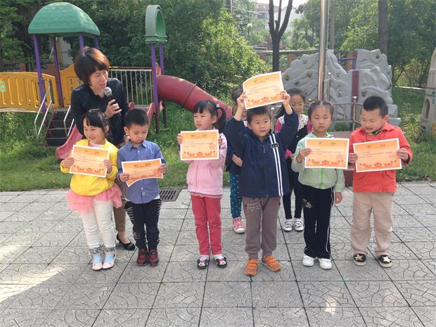 为了在这次比赛中获得好成绩,各班小选手们纷纷摩拳擦掌,摆开阵势,认真做好了各项准备工作。瞧!老师和小朋友们个个精神抖擞、斗志昂扬,优美的旋律响起来了,广播操比赛开始啦!大班小朋友动作协调、步伐矫健;中班小朋友上场了,他们队伍整齐划一、活泼俏皮;最后出场的是小班的小朋友,别看他们年纪小,可个个精神饱满,神气十足,把韵律操《爸爸去哪儿》做得惟妙惟肖,赢得了家长们的热烈掌声!最后,比赛由十二位家委会代表评选出了优胜奖和鼓励奖,园长老师为各班颁发了奖状。