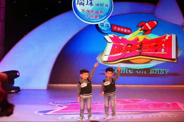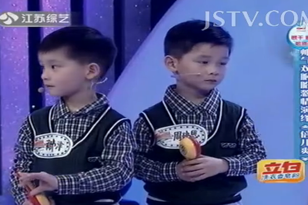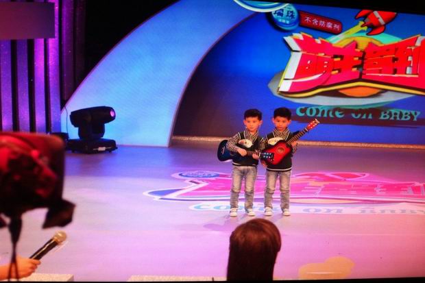 江苏综艺频道《震撼一条龙》推出十周年特别版块《萌主驾到》,选拔3到6岁的小朋友到节目上比赛卖萌。北环幼儿园青山湾园小一班的周玮恩、周玮泽兄弟是一对双胞胎,刚刚过了四岁生日。两个小帅哥因为长相可爱清秀,吸引了《萌主驾到》所有主创的注意。两个小宝贝带来的是一段自弹自唱的《我相信》,虽然手上拿着小吉他,但记者发现他们根本就是在“乱弹琴”。难得的是,兄弟俩唱得还走调,“想飞上天和太阳肩并肩……”而在表演舞蹈《倍儿爽》时,兄弟俩还很有职业精神,“我要话筒,我要话筒。”妈妈拧不过他们,把“话筒”掏了出来。原来就是两个沙锤……有了装备后的兄弟俩立即投入地跳起来。