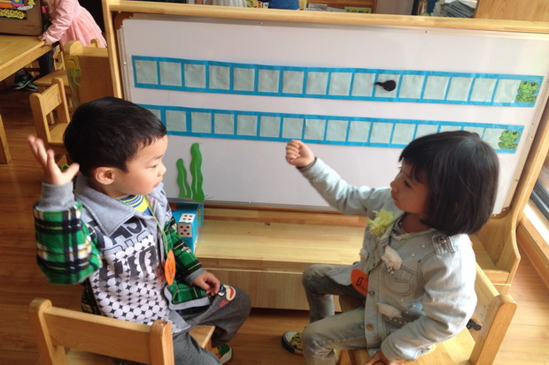 活动中各班教师分别根据幼儿的经验、能力、水平,开动脑筋精心设计,有效地利用现有空间,提供丰富的区域操作材料,让孩子们在各个区域中自主选择,互相合作,在轻松愉快的环境中充分体验自主学习的快乐。除此以外,教师还必须关注到如何对活动进行有效的指导和评价,如小四班的王运老师能在幼儿区域游戏中抓拍幼儿的操作情境,在评价中运用多媒体呈现幼儿的游戏情况,进行多方面的评价。老师能从益智游戏中幼儿如何交换材料验证操作结果的方法、在棋类游戏中幼儿用不同的猜拳方式决定输赢来走棋、建构游戏中新添的材料如何有效利用等细节进行评价,涵盖了幼儿间的交流、材料的增添运用、游戏方法的多样性、满足不同层次幼儿的发展等多方面的评价。
