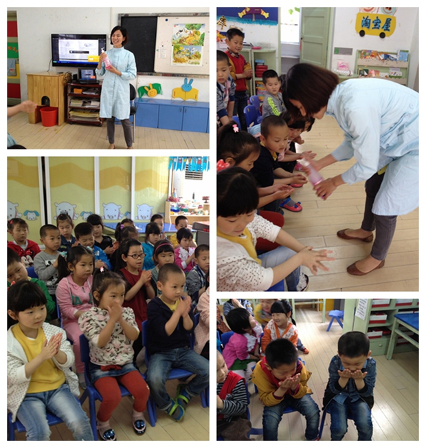 吕轩颉妈妈精心准备了一节健康活动《我们来洗手》,这是一个有趣的绘本故事,为了让孩子们更感兴趣,她在百忙之余做了个直观的、易于幼儿接受的课件,从护士着装颜色的区分到手足口病的预防,及正确洗手的方法,都给孩子们做了精彩的讲述。孩子们与吕轩颉妈妈积极互动,以高涨的热情表达着对她精彩讲课的认同和喜爱。吕轩颉妈妈用一首小儿歌教会了孩子们洗手六步法,全体师生和她一起复习了正确洗手的方法,并且还把预防手足口病编成了儿歌教给孩子们。通过和吕轩颉妈妈分享快乐的这半个小时里,孩子们获得了很多课堂上所不能获得的知识。