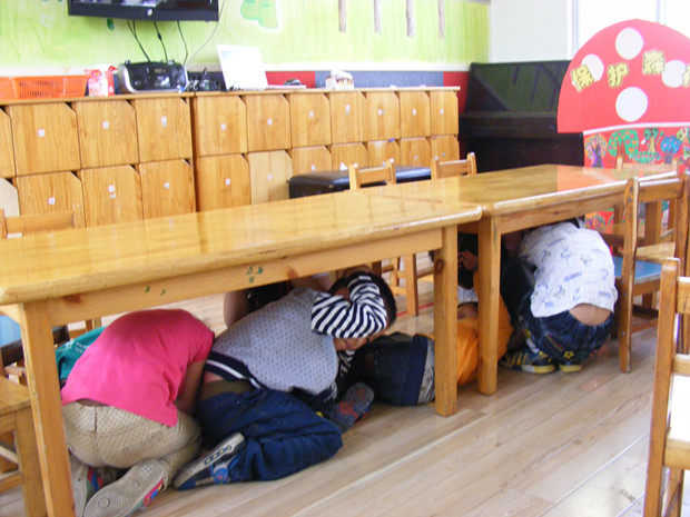 为了使全体教职工及幼儿了解地震发生时的应急避震知识,掌握应对地震发生时采取的防护措施和方法,提高幼儿自救互救的能力以及突发事件的应变能力和自救能力,5月16日红梅东村幼儿园举行了防灾减灾应急避险演练活动。为了搞好此次演习,领导小组制定了详细的演练方案,明确责任,落实任务,全校师生积极参与、全力配合,按预定方案冷静有序地进行。 上午10时,演练的地震警报声响起时,各班幼儿迅速躲到各自的课桌下,尽量蜷曲身体,降低身体重心。当“地震波减弱”信号发出时,孩子们在班级教师的带领下,全部按照预定的疏散路线,紧急而有序地从教室撤离到操场中央空旷地带,未发生任何互相推挤或踩踏事故。负责楼梯口疏导的老师坚守在自己工作岗位上,直到最后一名孩子通过,才迅速撤离。疏散到操场的幼儿在班级老师的带领下,整队、清点人数,全校幼儿无一人掉队,师生全部到达指定安全位置。在整个演练过程井然有序,达到预期的目的。演练结束后,总指挥老师结合演练过程对师生进行应急避险、自纠自护教育。