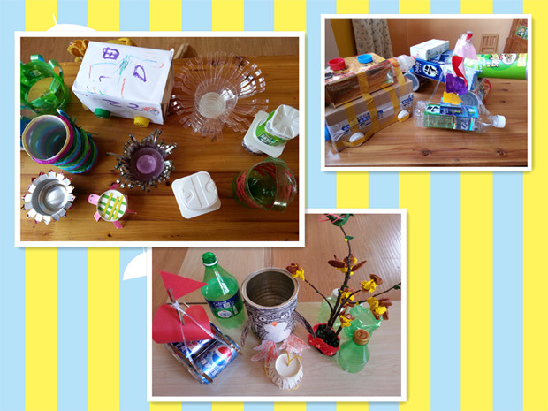 为了加强幼儿“低碳环保”的意识,增进父母与孩子间的情感交流,结合环保小卫士的主题,近日,大班年级开展了一次“变废为宝”的亲子环保手工制作活动。