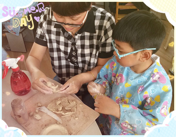 在今天的亲子陶艺制作活动中,许多家长都特地请假赶来和孩子积极地投入制作,他们纷纷表示这是非常有意义的活动,既能增加亲子情感,又能通过自己的作品义卖来帮助别人,培养幼儿关爱他人的情感。在家长和孩子们的努力下,一件件生动活泼、栩栩如生的陶艺作品陆续展现在大家面前,一件件作品中充满爱心和美好的愿望。