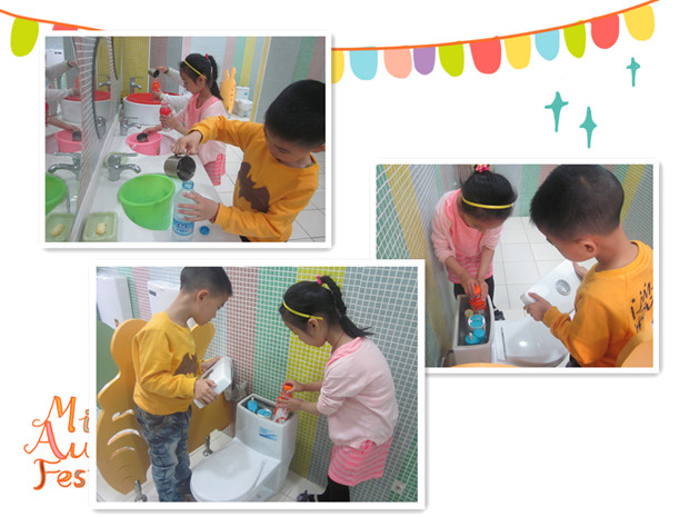 在活动中,老师让孩子们知道我们的生活时时处处都离不开水,洗菜、做饭、洗衣、洗澡、冲厕、拖地等等都要用水,要提倡一水多用,生活用水尽可能重复使用,尽量二次用水搞卫生冲厕所、浇花等;组织孩子洗手时,不让水自流,控制水龙头开关的大小并及时关闭。孩子们在实践中意识到了原来水的用处那么多,原来水对我们来说是那么的重要呢!