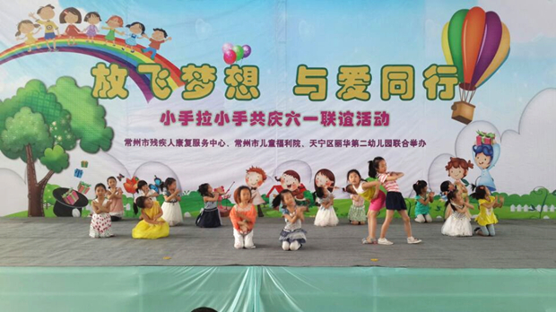 “六一国际儿童节”是所有孩子们的节日,为了让康复中心和福利院的孩子们过一个快乐而有意义的儿童节。常州市残联康复服务中心、常州儿童福利院和天宁区丽华第二幼儿园联合举办“放飞梦想,与爱同行”——小手拉小手共庆联谊活动。