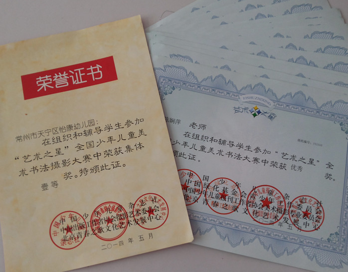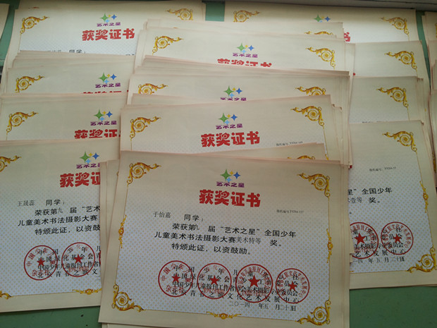 2014年4月我园参加了由中国少年儿童杂志社、中国少年儿童报刊工作者协会美术摄影专业委员会、北京青春之歌文化艺术发展中心联合主办的第九届“艺术之星”全国少年儿童美术书法摄影大赛,并于