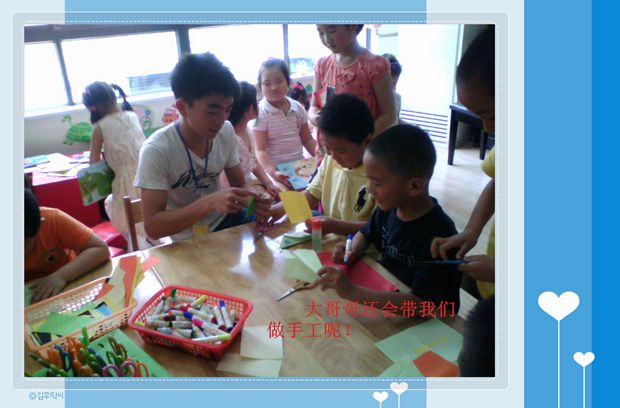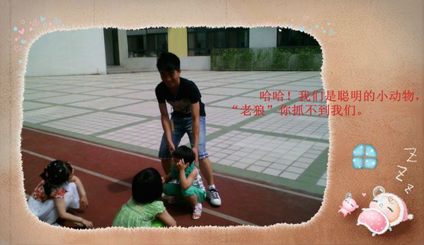 “大哥哥好!大姐姐好!”孩子们用稚嫩的童声在跟新来的老师打招呼呢!原来,我们广幼来了常工院的大二学生,他们将在我园见习两个星期,其中还有男同学呢!孩子们见到大哥哥尤其的喜欢,都一个个像个小猴子一样爬到了男同学的身上,男同学也特别地喜欢小朋友,在老师的指导和协助下与孩子们玩起了各种体能游戏。如:爬攀岩墙、民间游戏“老狼几点了”、跑步比赛等等,孩子们在游戏中一个个表现得格外勇敢和坚强。