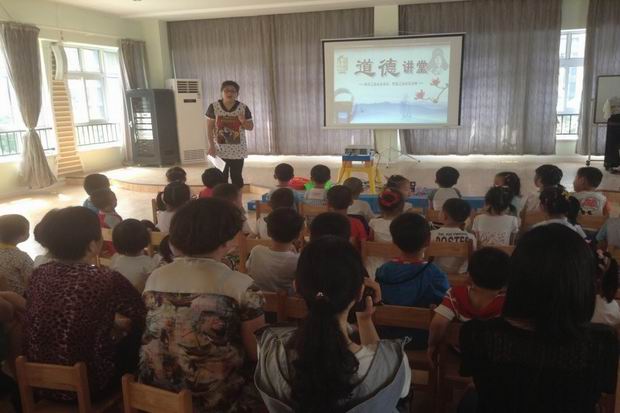 青山湾幼儿园多功能活动室传出朗朗读书声,“弟子规,圣人训,言孝悌,次谨信……”小班哟儿及其家长齐聚“道德讲堂”,共同学习《弟子规》,诵读圣人古训,传承经典道德文化。