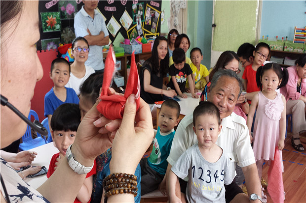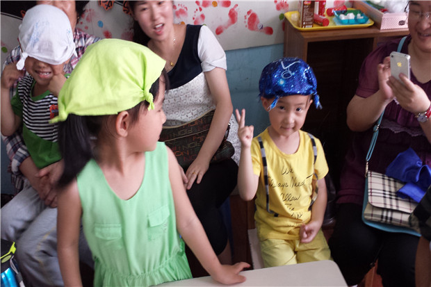 近日,常州市儿家翠竹幼儿园小班组的老师们结合教学主题开展了“布在手中,乐在布中”家园亲子联谊活动。简简单单一块布,却让孩子们感受到其中的乐趣:四个角打个结变成了一顶小帽子、卷卷折折变成了一个小布包、小角处一拉又变成了小茶壶、一会儿变成了一只小老鼠……,家长们也在绞尽脑汁地寻找着儿时的记忆,有些家长还在现场现学现卖,指导自己的孩子如何制作布袋,如何克服困难,如何向同伴学习等等。