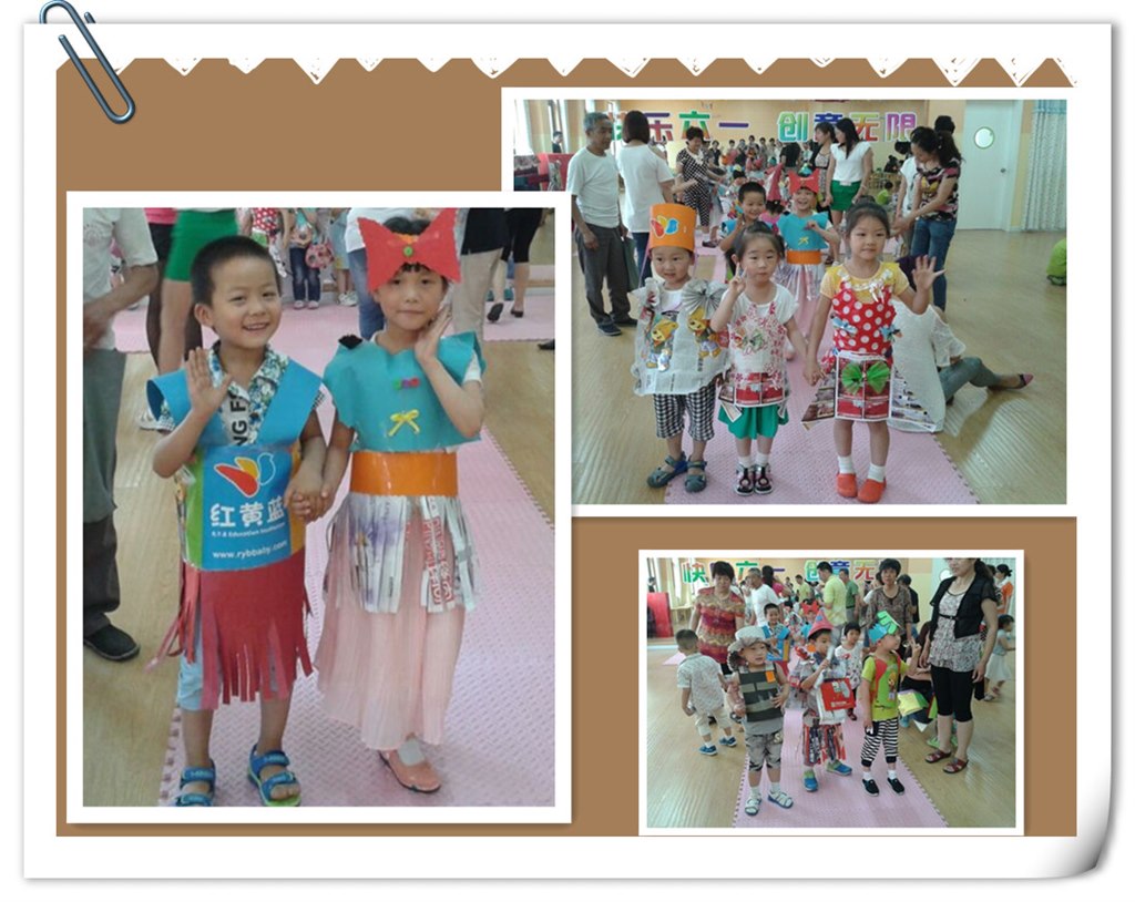 为了让幼儿带动家庭和社会一起行动起来,培养幼儿从小养成节约资源的好习惯,提高全民绿色环保意识、倡导低碳环保的生活理念;为进一步提高幼儿的动手、创造想象能力,让家长和孩子都能感受到亲子共同创作的乐趣,增进亲子感情。5月30日上午,一场环保亲子服装秀在华润国际红黄蓝幼儿园“隆重开幕”旨在让幼儿渡过一个低碳环保的六一节。