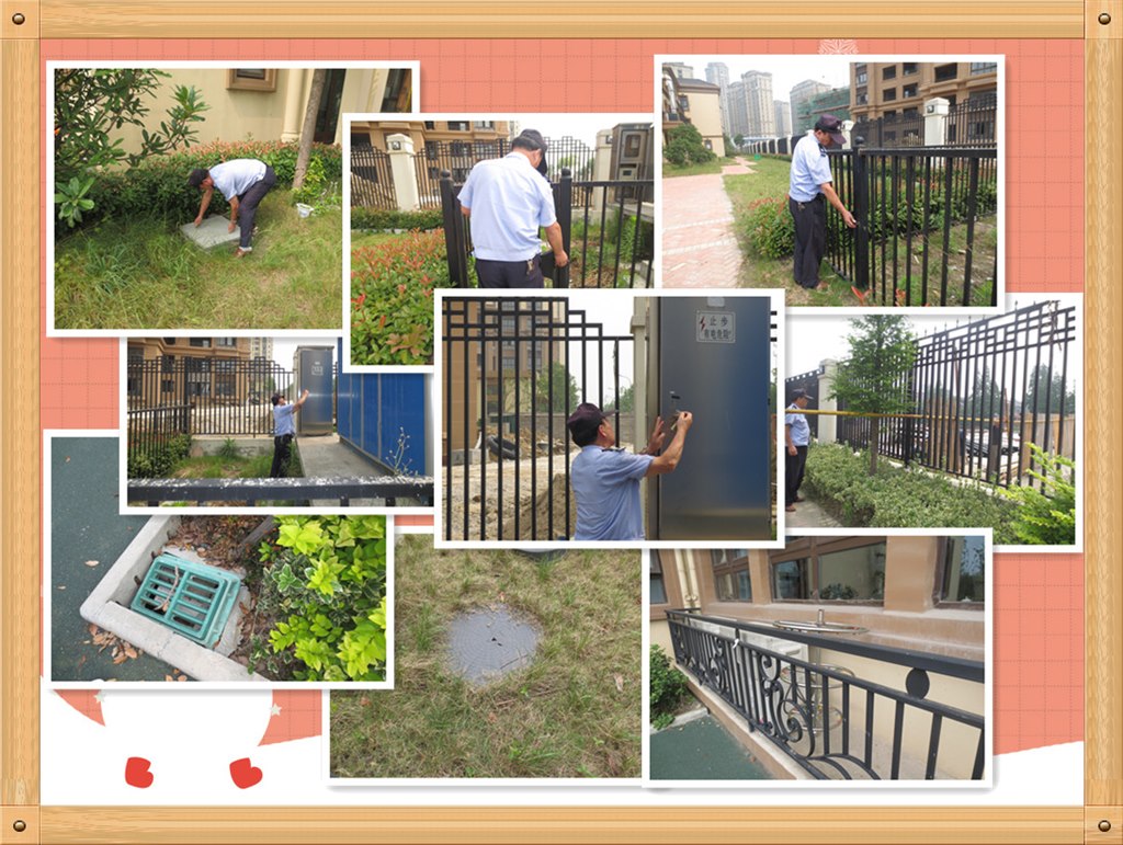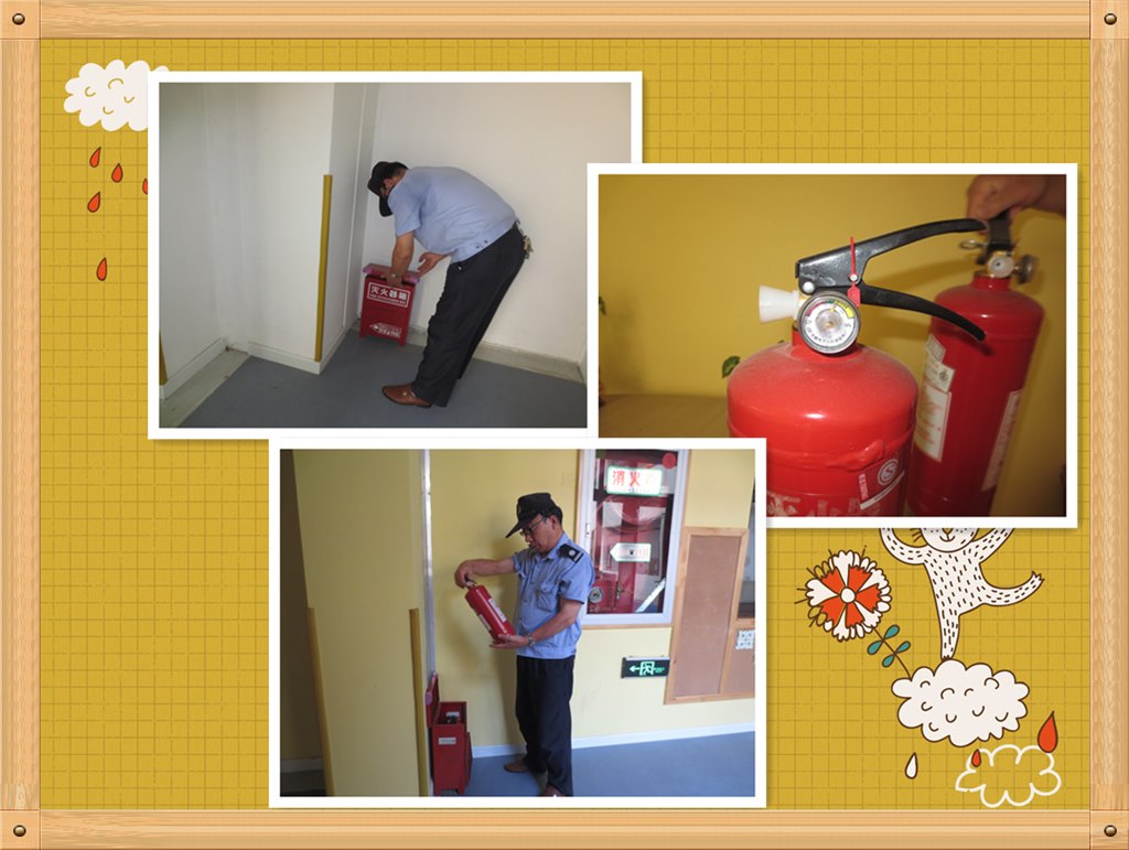 又是周五安全检查日,园长协同保健室相关人员与警务室保安人员一同对幼儿园整体校舍、设施进行了全面的检查。检查从校园大门开始至周边围栏、各式井盖、落水通道、大型玩具、消防设施、教室设施等进行细致地查看,对于能立即整改的随手解决,需要其他部门解决的也一一书面记录下来。