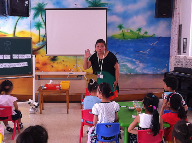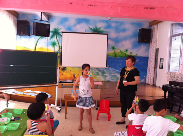 参与展示课的老师都是幼儿园的中年教师,老师们课前做了充分准备,制作教具、反复修改教案,认真展示自己的教学风采。教学活动中处处体现很好的“互动”特点,如周腊梅老师的美术活动《漂亮的泡泡》中,孩子们利用水粉、蜡笔进行了油水分离的操作;顾焕英老师的科学活动《会倒立的小丑》,孩子们在硬币、纽扣、回形针等多种材料的探索中,发现小丑倒立的秘密;胡淑英老师的美术活动《海底世界》,孩子们用五彩缤纷的色彩展现了神秘的海底世界;孙全妹老师的科学活动《会浮的鸡蛋》,孩子在大胆的操作中惊奇发现水中放入盐,鸡蛋慢慢浮起来了。