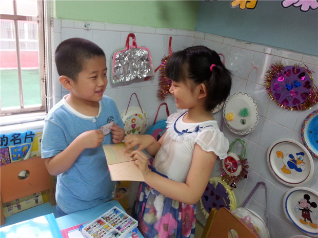 三年来,孩子们相依相伴,一起游戏,一起欢笑。听惯了彼此的问候;看惯了对方的笑脸。但很快就要毕业了,就要分别了,大家真舍不得。在最后的这段时间,大家努力将同伴们留在自己的心里。结合“六一”儿童节,翠幼大班教师们设计了互换名片,约定联系的活动。活动中,孩子们交流对名片的认识,讨论名片的用处。在爸爸妈妈的帮助下,设计了一张张精美的,具有个性的名片。在与同伴互换名片的高潮中结束,孩子们即获得了经验又加深了与同伴间的感情,大家在互换名片的同时,更在心中印下了同伴灿烂的笑脸。