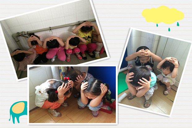 尖锐的警报声打破了幼儿园的宁静,全园800多个幼儿在老师的带领下迅速开始疏散,孩子们压低身体,用手护住头部,沿着墙边,紧张而有序地按照规定的路线到达安全地方,大部分幼儿安全到达操场,部分幼儿则选择墙角、厕所等地方掩护自己,全园所有幼儿顺利完成了地震疏散演习,全程只用了1分52秒。
