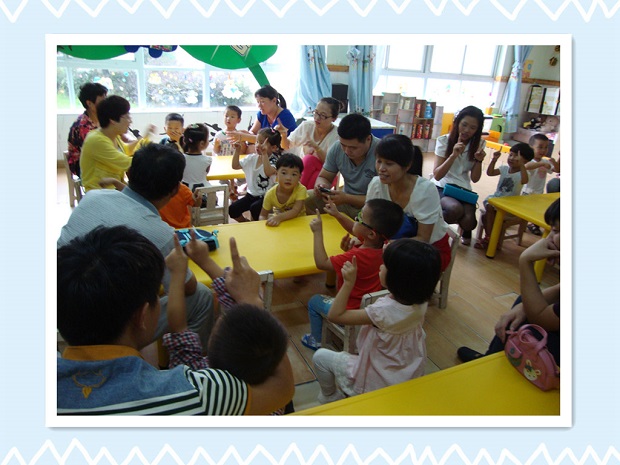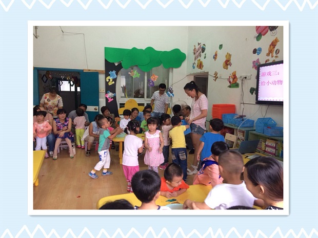 游戏是孩子的天性,在初次相遇的时刻,教师通过游戏初步了解孩子,大人通过游戏更加亲近孩子,搭建相互熟悉的平台。大手小手在一起,碰一碰,握一握,演一演,边念儿歌边做手指游戏,现场互动频繁,友好亲密。