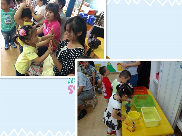 老师们借助不同颜色的动物宝宝道具,提供红、黄、绿三种丰富的大小不一的雪花片素材,给孩子们构筑童话般的任务场景,让大家说说、比比、做做,开动小脑筋,用小手寻找最佳的答案。稍后中场休息,老师介绍了盥洗室功能,让孩子们自己去尝试体验幼儿园的日常需要,在大人们的协助下,第一天表现良好,开了个好头。在今后的幼儿园生活里如果能慢慢地自己动手,就会人人夸奖!在参观幼儿园的配套设施后,家长满意,孩子喜欢。