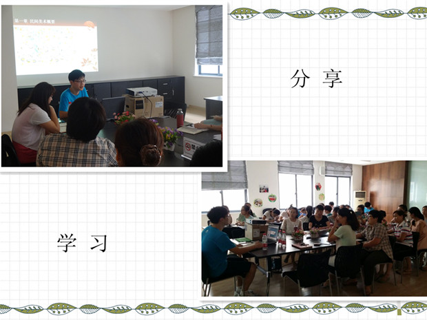 通过这次学习,使大家对我国民间美术在幼儿教育教学中传承与发展有了更深刻地理解,对我园实施的课题实施方向做了自我梳理与调整。学习让老师的思维有了拓展,大家尝试不断汲取其中的可利用元素,积极思考如何运用幼儿理解的教学策略,在以后的课题实施中,引导幼儿在看、做、玩中感受民间美术的魅力。