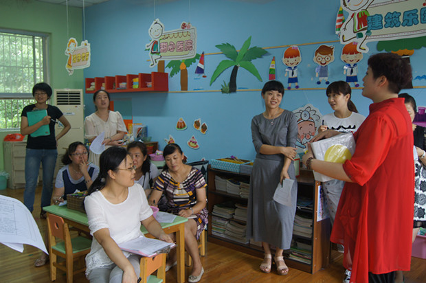 评比结束后,大家立即对区角环境创设和区域活动的开展情况进行交流讨论。围绕环境创设应从主题氛围、教育价值、适宜性、幼儿主体性、对话互动、材料投放、美感布局、经济实用、特色创新等方面积极踊跃发言。通过交流,大家就实践中遇到的一些困惑在集体智慧火花的碰撞中也得到了释疑。