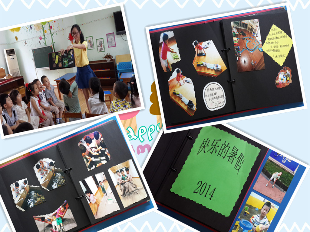 宝贝们纷纷将自己假期去各地游玩的照片带到幼儿园里来,还有细心的妈妈将这些照片做成了精美的相册。去海边玩沙子、在家做蛋糕、到田间采蔬菜……一件件有趣的事情,借助照片,通过宝贝们绘声绘色的讲述,成为了孩子们最珍贵的童年记忆。