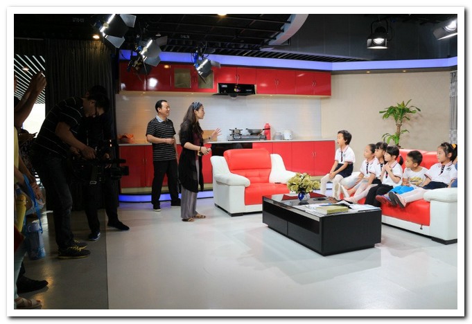 上午九点半,参观活动准时开始。大家先后参观了常州市现代传媒中心的电台直播间、新闻后期制作室、主持人工作室、电视录影演播厅等,放眼望去,映入眼帘的满是高科技的现代化设备,孩子们、家长们无不为之惊叹,跃跃欲试,流连忘返拍照留影,演播厅里传来一阵阵孩子们铜铃般的笑声。