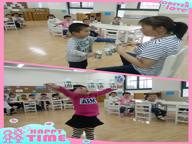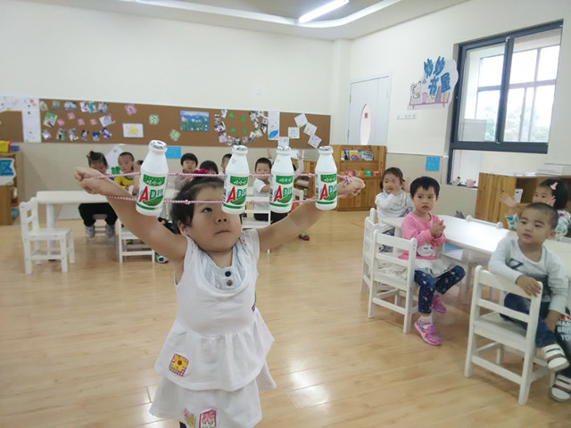 幼儿园的自制玩具五花八门,给小朋友们带来的乐趣也是此起彼伏。常州市丽华第三幼儿园利用废旧酸奶瓶、易拉罐等制作了拉力器,在活动中教师组织幼儿做各种游戏玩自制拉力器。“我是大力士”、“不倒翁”、“炒黄豆”等活动在一拉一松中可以锻炼幼儿手臂的灵活性,促进幼儿手臂肌肉的发育;“小兔跳跳”可以让幼儿练习各种跳跃动作,促进腿部肌肉的发育;“晃一晃”可以锻炼幼儿手臂的灵活性;“开火车”可以让幼儿练习绕障碍走路;“钻山洞”可以让幼儿练习钻的动作等等。