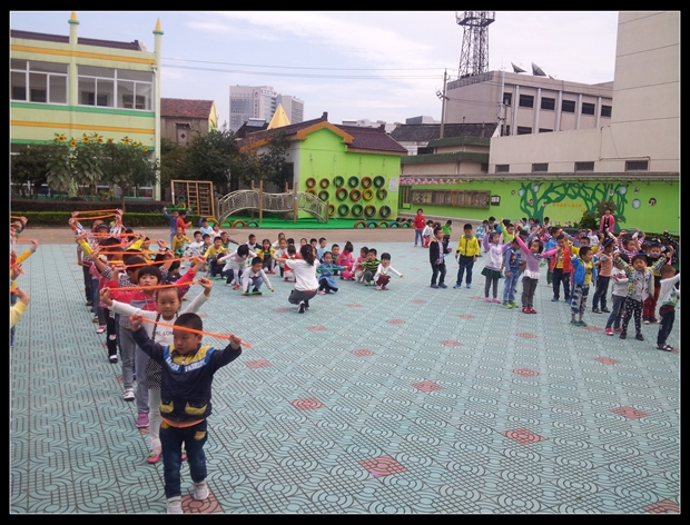 开学了,我们高高兴兴来到幼儿园,现在,我们是幼儿园的大哥哥大姐姐啦!看!我们排着整齐的队伍,跟随老师认真的学习新操,一个个多神气啊!