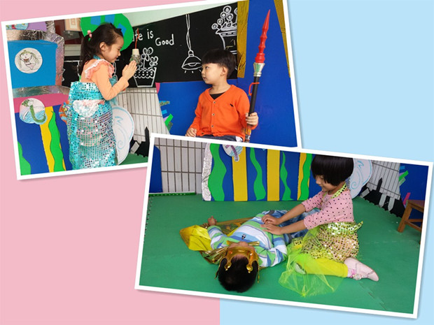 我园开园以来一直以音乐为特色活动,为了能发展幼儿的音乐感受力和表现力,提升幼儿的创造能力。我们每个级部按照幼儿的年龄特点开展有特色的音乐活动,大班以音乐剧为主要特色活动。 通过老师和孩子们在一起甄选音乐,创作剧本,本周,我园大班级部的音乐剧正式开幕啦!大班此次开展的第一个音乐剧本就是安徒生的童话故事《海的女儿》。老师们为音乐剧精心制造道具,准备游戏材料。在特色游戏活动时间,孩子们一个个神采飞扬,换上了缝制的衣服,拿起自己准备的道具,开心的参与到游戏中。虽然刚开始表演的时候,有点紧张,有点害羞,但在小朋友热情的掌声中,慢慢地,随着悠扬的音乐,他们的表演越来越好,越来越精彩。他们把故事表演的很生动,故事中人物的对话,人物的神态都表演的活灵活现,让我们仿佛置身其中,情不自禁的会开心、伤心。