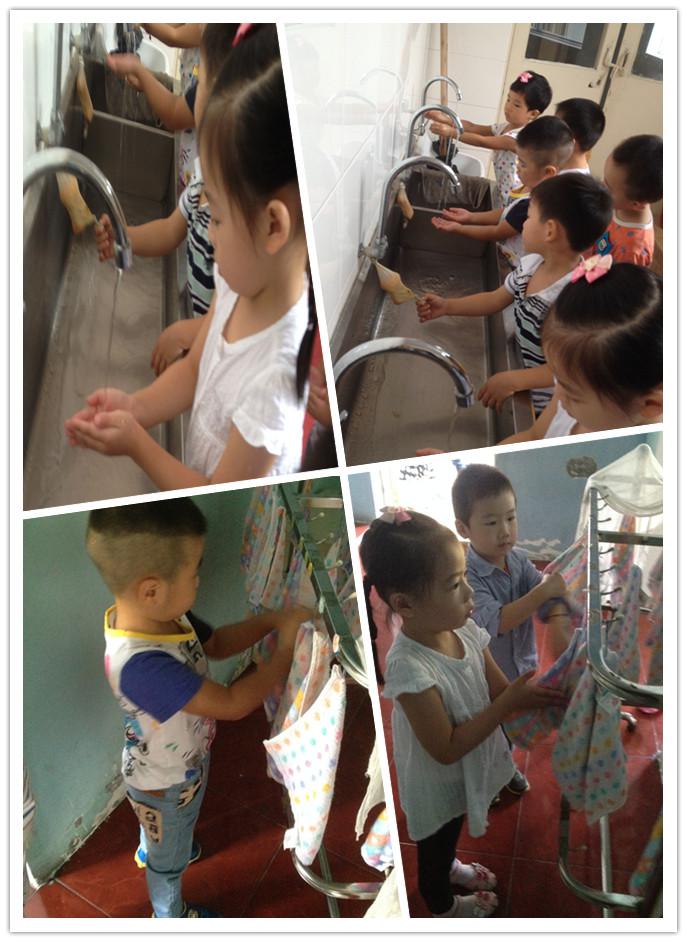 让洗手趣味化,游戏化,让幼儿在有节奏快慢的变化中,通过动作表演儿歌内容,表达了他们内心的感受,并能促使他们在潜移默化中掌握基本的生活技能。现在,就连以前最爱敷衍的卷袖子、甩手、摘毛巾等环节,孩子们都愿意完成了。