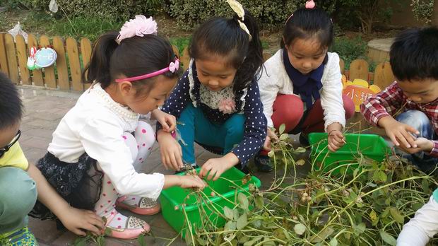 在硕果飘香的秋天,幼儿园种植地里的花生也成熟了。孩子们个个喜气洋洋,心情特别地兴奋,因为他们又要亲手收获今年春天种植的花生了。