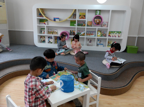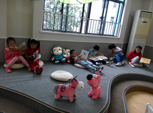 在幼儿阅览室中,可爱、舒适的小椅子,厚实、柔软的小坐垫,松软、安适的大枕头,我们大四班的小朋友兴高采烈的来到这里汲取知识的养分。我们的阅读室,我们的家,我们丽华三幼新的乐园。仰视屋顶明亮的灯光,低俯书架浩瀚的海洋,大四班的孩子们正在书的海洋里漫游,他们聚精会神,他们专心致志,他们在为自己的人生增添源源不断的“调味品”。甜逸的座位可让幼儿产生像在家中阅读一样的感觉,从而吸引更多的幼儿进入图书室阅读。