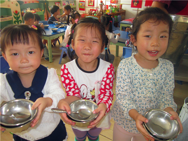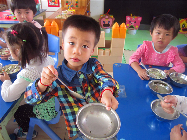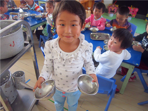 老师们精心策划各种活动来引导孩子们进行“光盘行动”。孩子们从“谁知盘中餐,粒粒皆辛苦”的诗歌中体会到农民伯伯的辛苦;在情景剧《浪费的小猪宝宝》中,孩子们明白了浪费可耻、节约光荣。每当吃午饭的时间到了,伴随欢乐的音乐声响起,老师把可口的饭菜分发给孩子们。孩子们都会懂事地拿起勺子,大口大口地把饭菜送进嘴里,吃得可香了。重要的是,他们把盘子里的饭菜吃了个精光!连桌子上也一粒米都没有。此外,还通过家园配合,来进一步帮助孩子养成“光盘”的好习惯。在宣传栏上,向家长提倡“光盘行动”,让家长在家以身作则,做好孩子的榜样,并随时提醒、督促孩子吃完饭菜。另外,外出就餐时,点少量菜,如果吃不完实行打包,让孩子把这些行为都看在眼里,这样才能更好的培养孩子的“光盘习惯”。