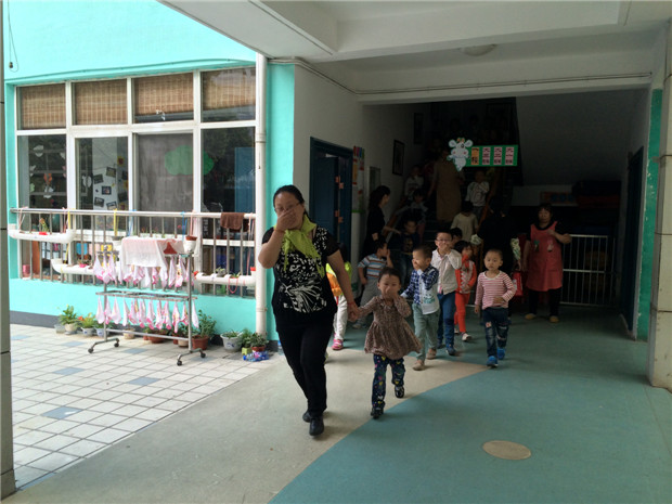 为了让活动取得圆满成功和当天演习的有序顺畅,我们提早一周精心设计了演练活动方案,并就每个楼层、教室的分布,疏散的通道次序,以及火灾发生时应该注意的事项都进行了周密的安排与布置。让全体教职工做到分工明确,对活动了然于心。做好了充分的准备后,消防演习活动开始啦!上午10点25分一到,随着警报声“呜——!”的突然响起,老师们大喊着“着火了,快逃!”紧接着,小朋友们在各班教师紧张有序的组织下,用毛巾捂着口鼻、弯着身子,按指定的路线有序的逃离了“火灾现场”,并在指定的安全场地集合。这次消防演习活动从警报响起到十三个班的幼儿全部安全撤离,仅仅用了2分32秒的时间,真可为做到了分秒必争。