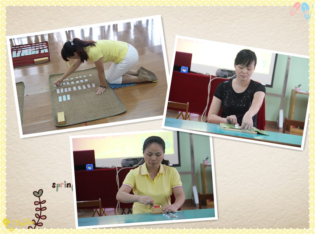 娑罗巷幼儿园是以蒙氏教育为特色的幼儿园,因此园所一直非常注重对教师的培训工作。幼儿园每学期都会组织全体教师进行蒙氏教具的展示及延伸操作的培训考核。