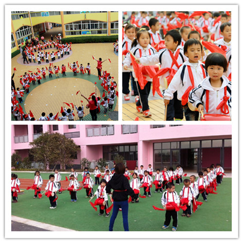 踏着轻快的音乐节拍,孩子们精神抖擞地走进场地,列出整齐的方阵,跟着老师们一起做着优美的腰鼓动作。每个年级组的老师们根据幼儿的年龄特点,结合幼儿园的特色,编排了别开生面的欢庆腰鼓操,无论是大班的《闪闪的红星》,中班的《浓浓陕北情》和小班的《腰鼓乐》都充满了浓郁的民族特色。比赛中,红色的腰鼓,热情的彩带衬托出孩子们那认真的态度和可爱的表情,这些热烈的色彩和明快的表情点亮了青龙和紫云的天空。
