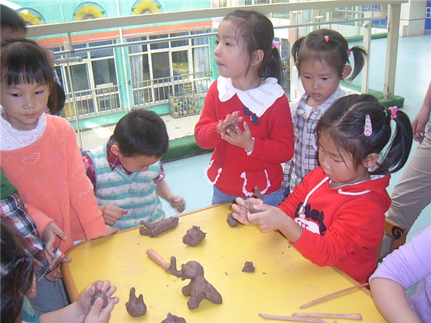 近日,实验幼儿园大四班与中四班联合开展了大带小陶艺制作活动。此活动的目的是让大班的幼儿能够主动关心帮助中班的弟弟妹妹,体验做哥哥姐姐及关心他人的快乐,培养初步的责任意识。