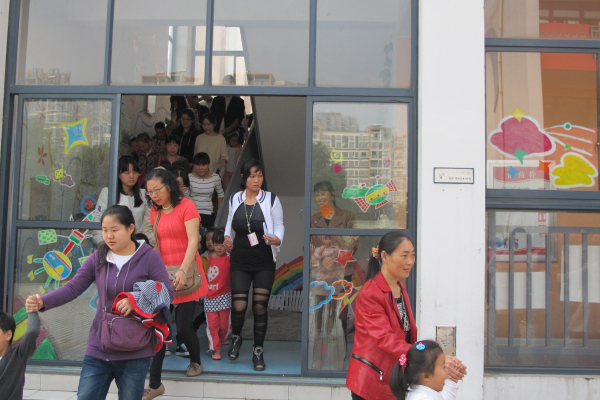 10:30随着警报声响起,“防踩踏演习”开始了。各班幼儿和家长们在老师的指挥下迅速地向幼儿园里空旷的操场上撤离,整个活动用时4分钟。全体师生对于参与大型活动的组织顺序,进场线路,行进中的安全要点都有了新的体会,是一次成功而有意义的防踩踏演练活动。