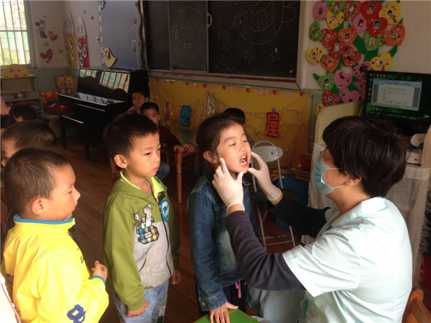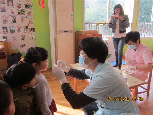 为了倡导健康的生活方式,从小爱护孩子的牙齿,10月22日上午天宁区妇幼保健所的口腔医生来我园为幼儿做口腔检查。医生耐心细致地为对我园15个班的孩子进行检查,并对幼儿进行牙齿涂氟,并告诉我们的孩子要天天刷牙,注意口腔卫生,有问题及时让爸爸妈妈带我们去看牙医等等。对口腔有问题的孩子进行了详细记录,并填写了家长回执单,一方面使家长及时了解幼儿口腔存在的问题,以便能够及时治疗或采取相关措施。另一方面向家长提供适合孩子需要的口腔护理指导,让孩子能尽早养成良好的口腔卫生习惯,预防口腔疾病。