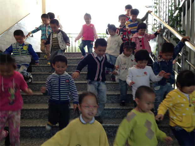 上午10点左右,孩子们正在教室里进行活动,忽然听到紧急的警报声,各班教师迅速按紧急预案的疏散线路,带领幼儿分不同的楼梯通道迅速且有序下楼。很快孩子们集中到操场安全地带,教师迅速地清点人数,并向总指挥报告。整个疏散活动只用了2分多钟。演习结束后,各班老师回教室后,还专门给孩子讲述了火灾的发生、如何在火灾中逃生等知识。